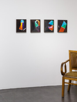 Die Bilder aus der Serie ‚tongs’ sind motiviert vom magischen Augenblick in dem sich ein latentes in ein sichtbares Bild umwandelt. Dabei wird Fotopapier mit weissem Licht belichtet und in die Entwicklerflüssigkeit gelegt. Exakt wenn das Bild beginnt sich selbst hervorzubringen, wird der Prozess gestoppt. Dieser Übergangszustand vom latenten zum sichtbaren Bild wird festgehalten, im weitesten Sinn „fotografiert“.