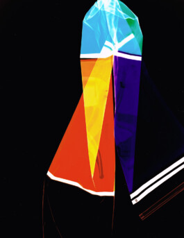 Die Serie ‚cmyo’ zeigt gebrauchte digitale Druckfolien von einem Thermosublimations-Drucker mit den Farben cyan, magenta, yellow, overcoating. Diese Folien sind einerseits selbst Objekte der Fotogramme, dienen anderseits aber auch als ‚Farbnegative’.