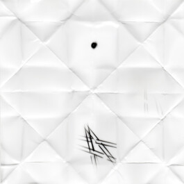 Die Bilder ‚cubes’ etwa thematisieren den fotografischen Abbildungsprozess selbst. Eine aus Fotopapier gefaltete Lochkamera zieht mehrere Parameter der Fotografie zusammen: Apparat und Bild, Prozess und Material. Sichtbar sind die Faltungen und das Einstichloch sowie letztlich die Spuren des einfallenden Lichts.